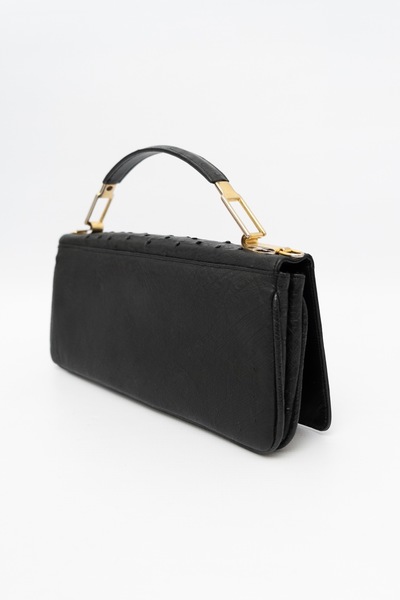 Vintage Cape Cobra Ostrich Handbag with top handle. Luxurious ostrich leather with gold tone top handle. Perfect for an evening out!