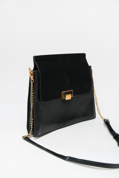 Charles & Keith Black Suede & Leatherette Large Crossbody Bag