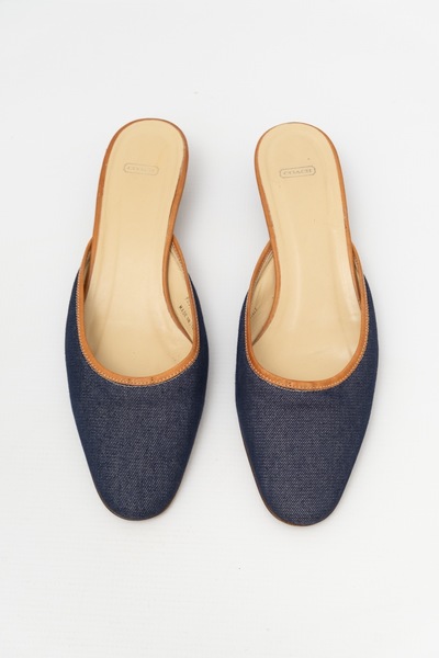 Vintage COACH Denim Mules. Small low heel. Denim outer with leather trims. Very stylish with jeans and a tshirt. Made in Italy