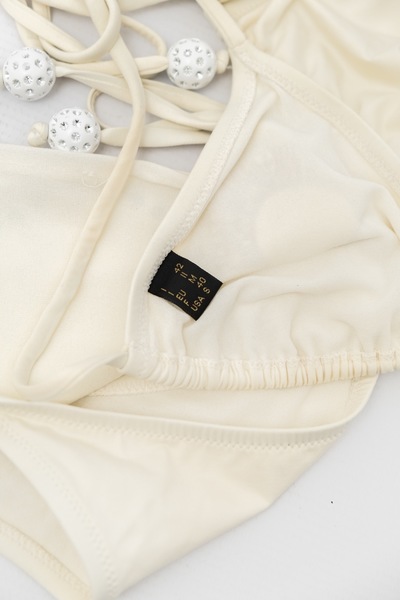 Vintage Just Cavalli Beach Bikini Set. Rare! Tie details with acetate balls with silver details. Cherry print Just Cavalli Beach logo on the bikini top. Large red rose with JustCavalli logo and swarovski crystals on the bikini bottoms. Tags have been removed (most luckily Made in Italy)