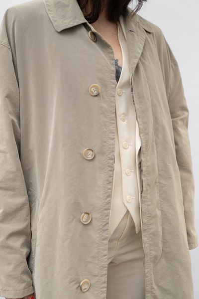 Vintage Karl Lagerfeld Paris Mac with detachable lining. Khaki greenish color. No belt loops( similar shade belt is included).