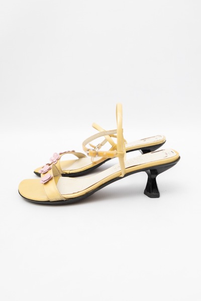 Vintage Kurt Geiger Leather Kitten Heel. Small heel. Foral leather applique. Super cute for summer! Made in Italy