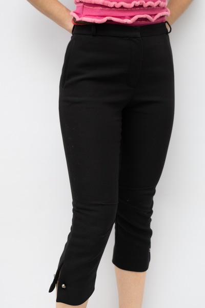 Pre-owned Lanvin capri's with a beautiful 100% brass pin at the cuffs. Rare find! Brass pin details on both cuffs. Tailored fit, thick suiting fabric, side pockets, sits high rise. Retail ZAR 28 000