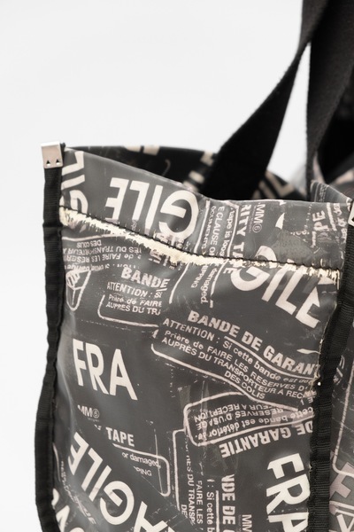 Pre-owned MM6 Maison Margiela Fragile PVS Tote. Canvas handles with printed PVC outer. Roomie tote bag size. Snap button closure, small inner pocket. 100% cotton inner canvas. Made in China
