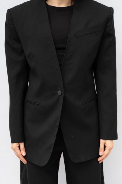 Pre-owned Mugler x H&M Single Breasted Wool Blazer. Big 80s styles shoulders. Structured silhoutte. Absolutely amazing Mugler piece. The definition of power dressing! Embossed logo button.