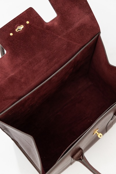 Pre-Owned (Almost new!) Mulberry Bayswater Heritage Satchel Oxblood in Natural Grain Leather. Unopened adjustable shoulder strap is included. Luxurious oxblood suede inner lining. Top handles. Gold tone embossed Mulberry hardware. Made in Italy. Supplied with original dustbag. Retail ZAR 33 000