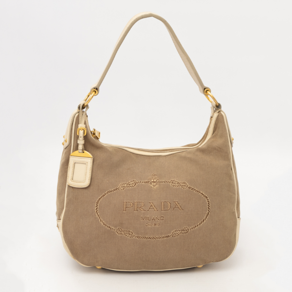 PRADA Vintage Logo Jacquard Canvas & Leather Shoulder Bag
