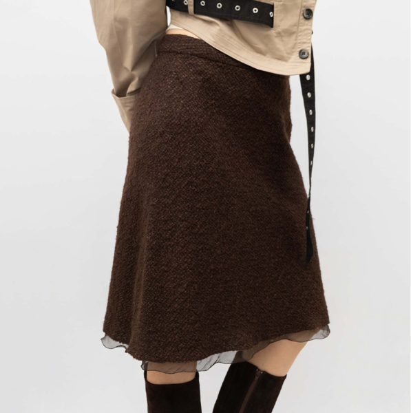 PRADA Vintage Tweed Midi Skirt With Lace Trim