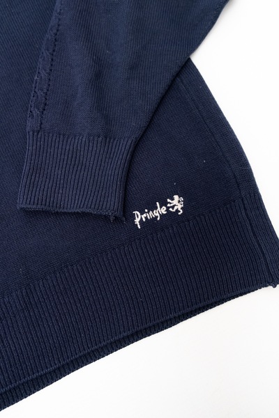 Vintage Pringle Sports (Pringle of Scotland) Cotton Logo Jumper in navy. A classic knit! Embroidered Pringle logo at the hem. Deep navy color.