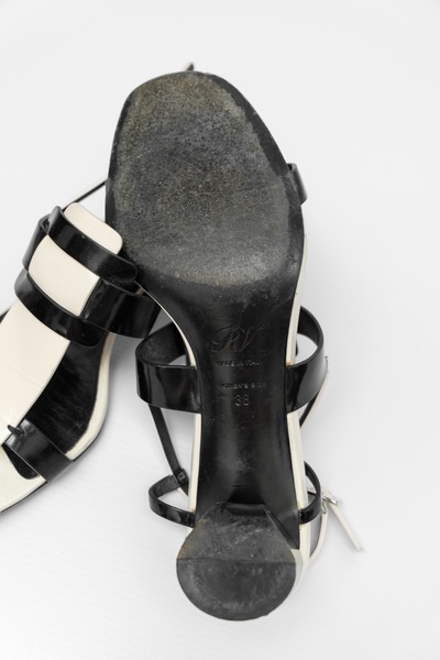Luxury Footwear Label Pre-owned Roger Vivier Paris Leather Block Heel Sandals. Black and white leather sandals. Made in Italy. Supplied with original dustbag