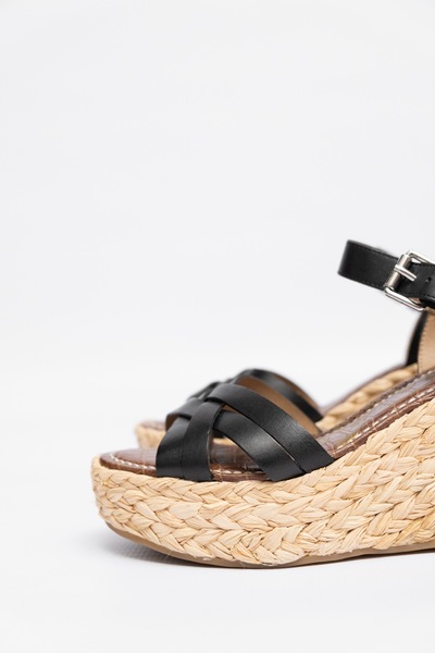 Pre-owned Sam Edelman Leather Espadrille Wedges. Leather upper. Silver tone engraved buckles.