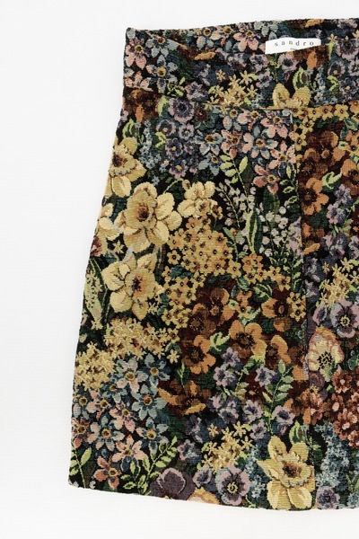 Pre-owned Sandro Tapestry Mini Skirt. High rise fit. Floral tapestry fabric. Side zip.