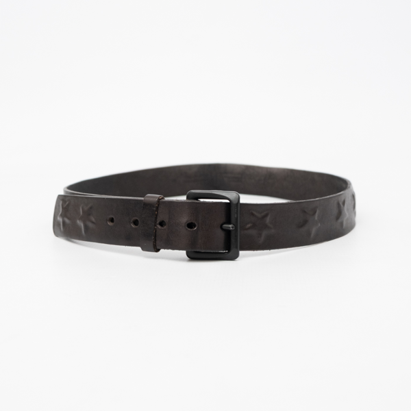 Vintage United Colors Of Benetton Star Leather Embossed Belt. Dark brown with sligth shimmer. Embossed stars. Matt belt buckle. Made in China