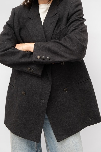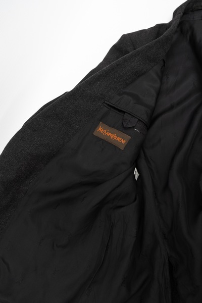 Vintage YvesSaintLaurent Pour Homme Classic Blazer in Charcoal. A beautiful classic oversized mens fit blazer. Soft wool fleece. Embossed YSL buttons. Embossed YSL satin like lining.
